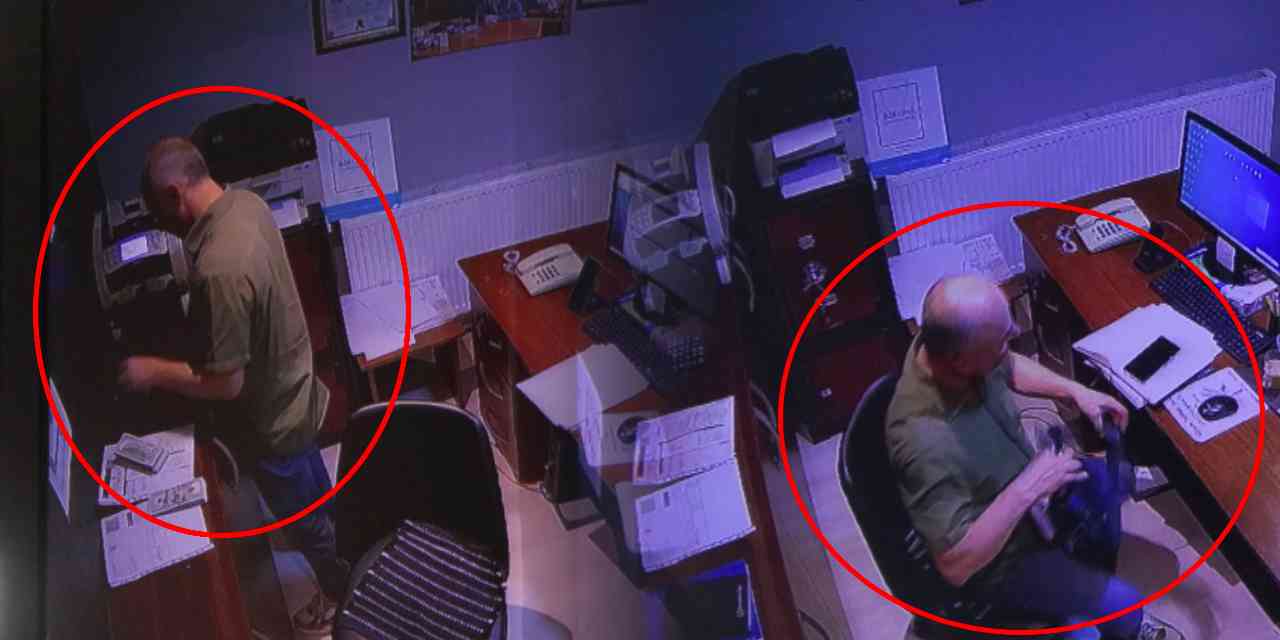 Şüpheli T.Y.’nin paraları kasadan aldığı ve iş yerinden ayrıldığı anlar güvenlik kamerası kayıtlarına yansıdı.