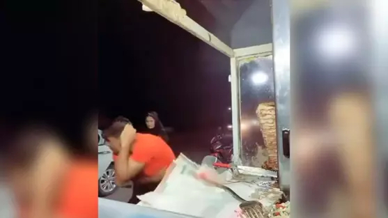 Fotoğraf: Saldırı anından bir kare. Şanlıurfa’da dün akşam saatlerinde gerçekleşen olayda dönercilik yapan İsmail Acma, müşterisine satış yaparken sosyal medya hesabı üzerinden de canlı yayın başlattı. Müşterisinin siparişini hazırlarken yoldan geçen ve plakası öğrenilemeyen bir otomobilden silahla ateş açılması üzerine yaralandı. Olay anında hem siparişi hazırlayan Acma hem de müşterisi kadın büyük bir şoka uğradı.