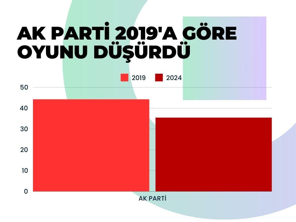 AK Parti Türkiye’nin 81 ilinde de 2019 yerel seçimlerine göre oyunu düşürdü. Ak Parti 2019’da Türkiye genelinde yüzde 44.33 oy almıştı.