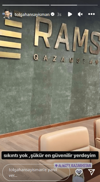 Çin-Kazakistan sınırında 7 büyüklüğünde deprem oldu. Herhangi bir can kaybının bildirilmediği depremin şiddeti Kazakistan'da bile hissedildi. Şu anda Kazakistan'da olduğu için durumu merak edilen oyuncu Tolgahan Sayışman "İyiyim" dedi.