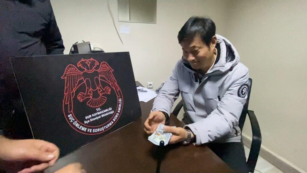Çin’den Diyarbakır’a tıbbi ürün ticareti için gelen iş insanı Yang Qinghui’yi 10 bin dolar dolandıran R.K. gözaltına alındı. Polisten parasını teslim alan Qinghui “Diyarbakır polisi çok verimli çalıştı ve paramı bir saat içinde geri aldı”dedi.