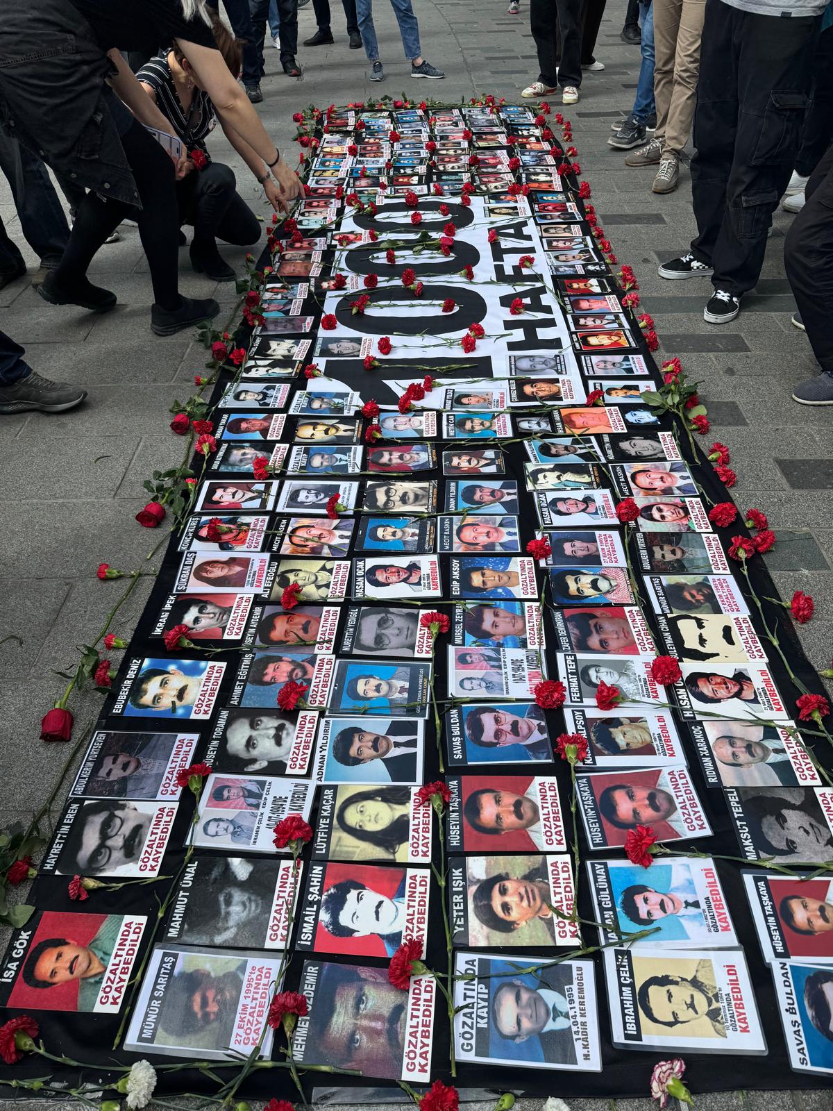 “Gözaltında kaybedilen sevdiklerimize dokunamıyoruz ama her cumartesi onların resimlerini gururla taşıyoruz. Mezarlarına çiçek koyamıyoruz, ama her cumartesi onlar için Galatasaray Meydanı’na bir karanfil bırakıyoruz. Bu gelenek kuşaktan kuşağa aktarılarak sürüp gidecek. Galatasaray Meydanı’na bakan her göz, o meydandaki her taş, devletin bu büyük utancının ve Cumartesi Anneleri’nin direncinin tanığıdır!”