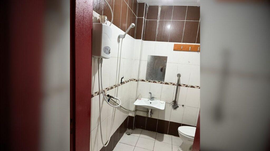 Polis memurları, kaldıkları okuldaki tuvaletlere takılan şofbenlerle duş alıyorlar.