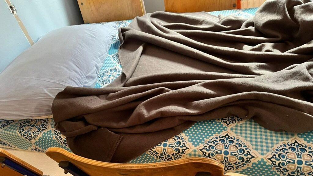 Birçok polisin okul sıralarını birleştirerek yaptıkları yataklardan biri.