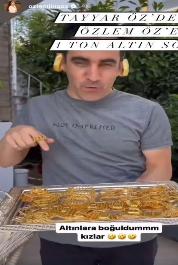 Tayyar Öz eşine sosyal medya hesabı üzerinden tepsi dolu altın göndermişti.
