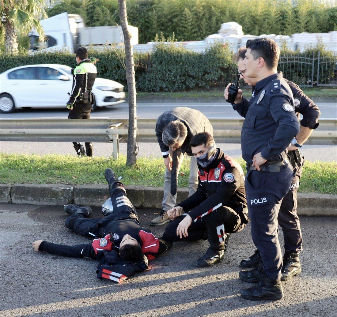 Motosikletli polis timi şüphelinin aracını bir süre takip edip durdurmaya çalıştı. Motosikletten inen polise çarpan sürücü daha sonra başka bir otomobile de çarparak kaçtı.