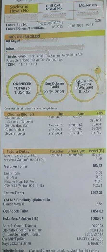 Diyanet’in örnek olarak topladığı faturalardan bir tanesi.