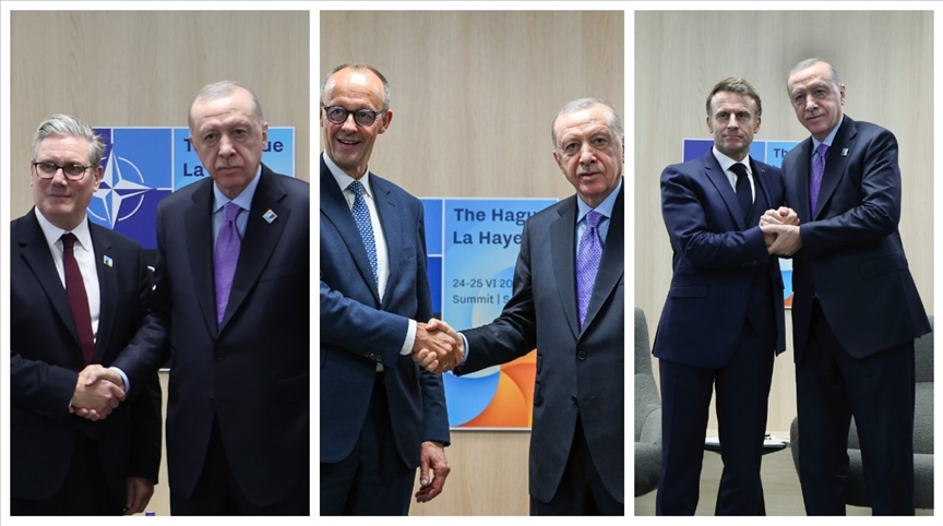 Cumhurbaşkanı Erdoğan “NATO Devlet ve Hükümet Başkanları Zirvesi” için bulunduğu Hollanda’nın Lahey kentinde İngiltere Başbakanı Starmer, Almanya Başbakanı Merz ve Fransa Cumhurbaşkanı Macron ile bir araya geldi.
