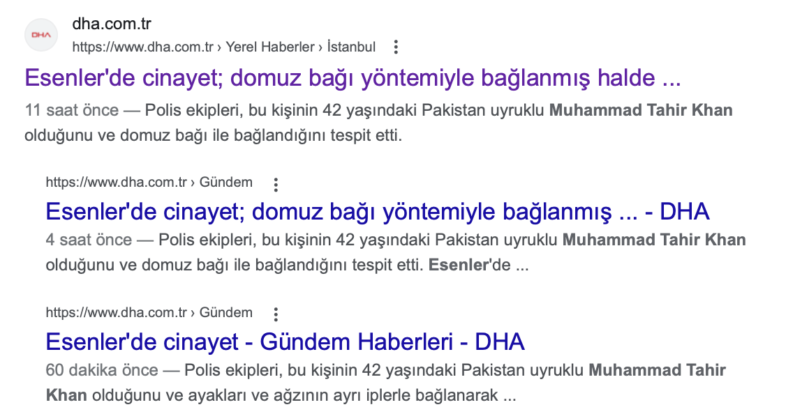 Cinayetin domuz bağı yöntemiyle işlendiğine dair ilk haberi sabah saatlerinde geçen DHA, ardından hem başlığı hemde haberin içindeki detayları değiştirdi.