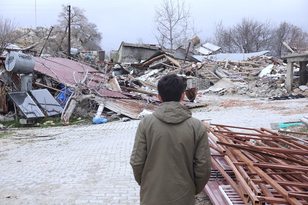 Yıkımın yoğun olduğu ‘Kayalık’ denilen bölgeye giden yolda, Antalya’da üniversite öğrencisi olan Ali’yle buluşuyoruz. (Bu bir takma isim, genç adam güvenlik endişesiyle gerçek adının kullanılmasını istemiyor.) O, depremde babasını kaybetti.