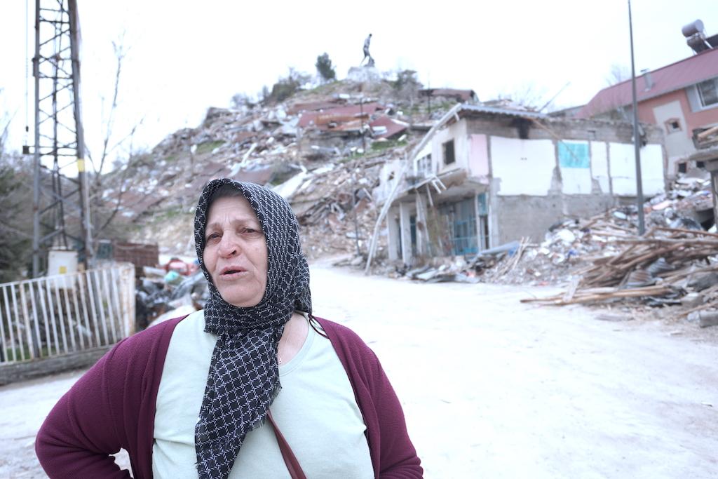 Cuma Ergen, yalan borcu olmadığını vurgulayıp ilk gün tüm herkesin enkazdan çıkarıldığını söylüyor. Yıkımın yoğun olduğu yere doğru yürüyüşümüz sürüyor. Karşıdan gelen Semra Ocak, yaşlı gözlerle “Köyümüz gitti, hayallerimiz bitti. Semra Bacım gitti” diyerek yakınını kaybettiği enkazı gösteriyor.