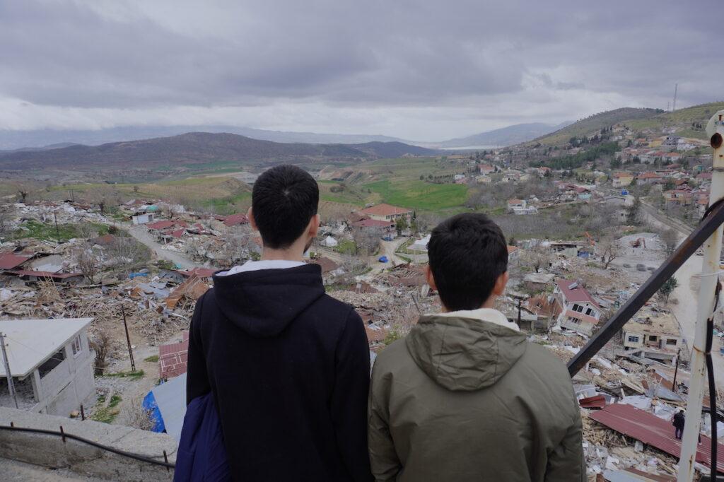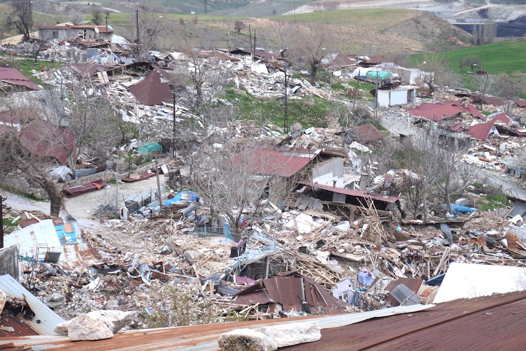 “Hep milletten, devletten bir şey görmedim” diyen Ahmet, bazı belediyelerin yaptığı yardımların yoğun olduğunu söylüyor. Yürüyüşümüz, yıkılan evlerin arasında, köyün en yüksek noktasına vardığında iki arkadaş, yerle bir olan köylerine bakıp, tanıdıkları ya da arkadaşlarının evlerini parmaklarıyla gösteriyorlar.