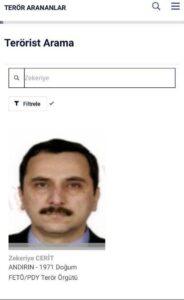 Zekeriya Cerit gri kategoride arananlar listesindeydi.