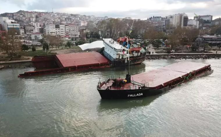 Kamerun bayraklı ‘Pallada’ isimli kuru yük gemisi de Zonguldak açıklarında metrelerce yükseklikteki dalgalarla sürüklenerek karaya oturmuş, ikiye bölünmüştü. 114 metrelik gemide bulunan 13 personel yardım çağrılarının ardından kurtarılarak tahliye edilmişti. Fırtınanın dinmesiyle birlikte gemi havadan görüntülendi. Sahil şeridinde kıyıda iki parça halinde bulunan geminin kaldırılması için çalışma başlatılacak.