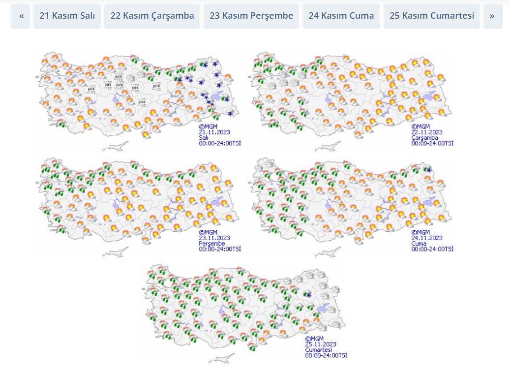Meteoroloji Genel Müdürlüğü’nün (MGM) beş günlük hava durumu tahmini.