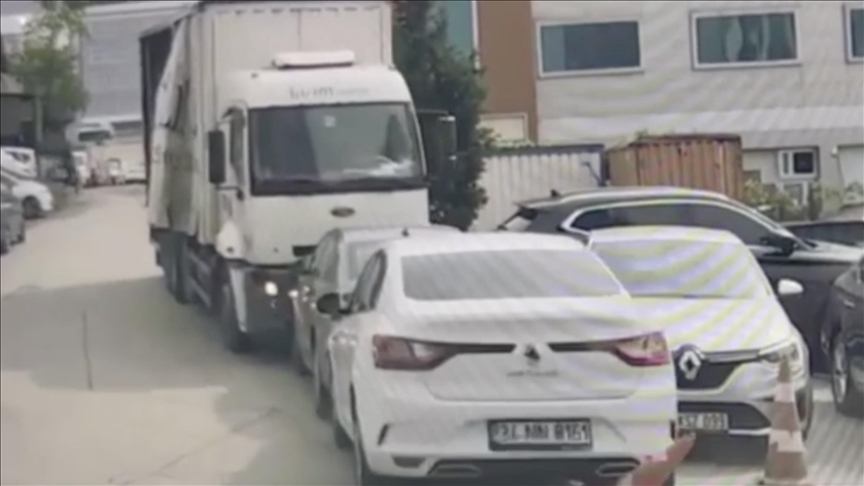 Aydıntepe Mahallesi Billur Sokak’ta park edilen kamyon bir süre sonra el freninin boşalması sonucu hareket etti.