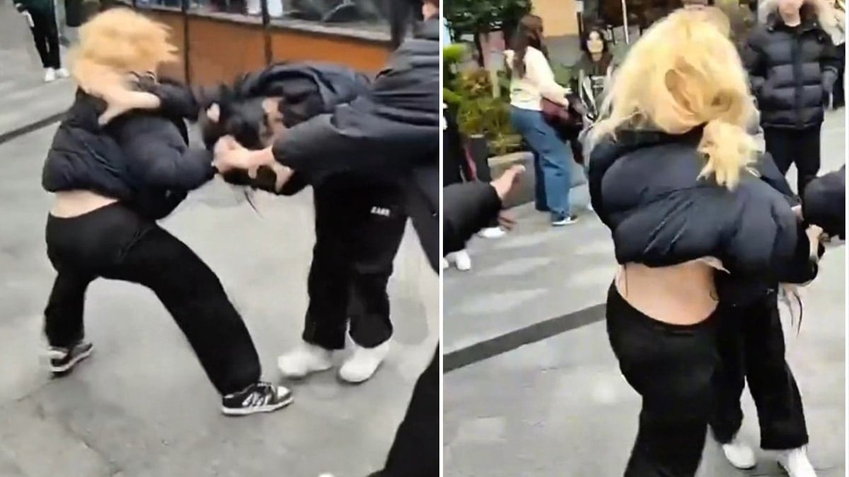 Çevrede bulunan erkekler ise kavgayı ayırmak yerine tempo tuttu. Kimi de o anları cep telefonuyla kaydetti. Görüntüler sosyal medyada da çok konuşuldu.