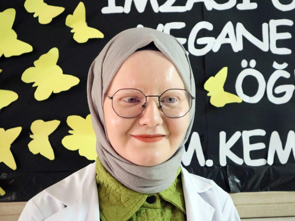 Cilt, saç ve göz renginde farklılık olan, görme düzeyi büyük oranda düşük albino hastası 26 yaşındaki Fatma Ateş, hayalini kurduğu gibi öğretmen oldu.