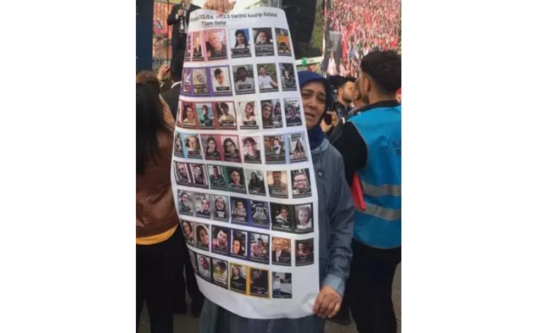 Deprem sırasında Rönesans Rezidans’ta olduğundan emin oldukları ama cesedine ulaşamadıkları yakınlarını arayanlar pankart yaptırmıştı. / 12 Mayıs 2023.