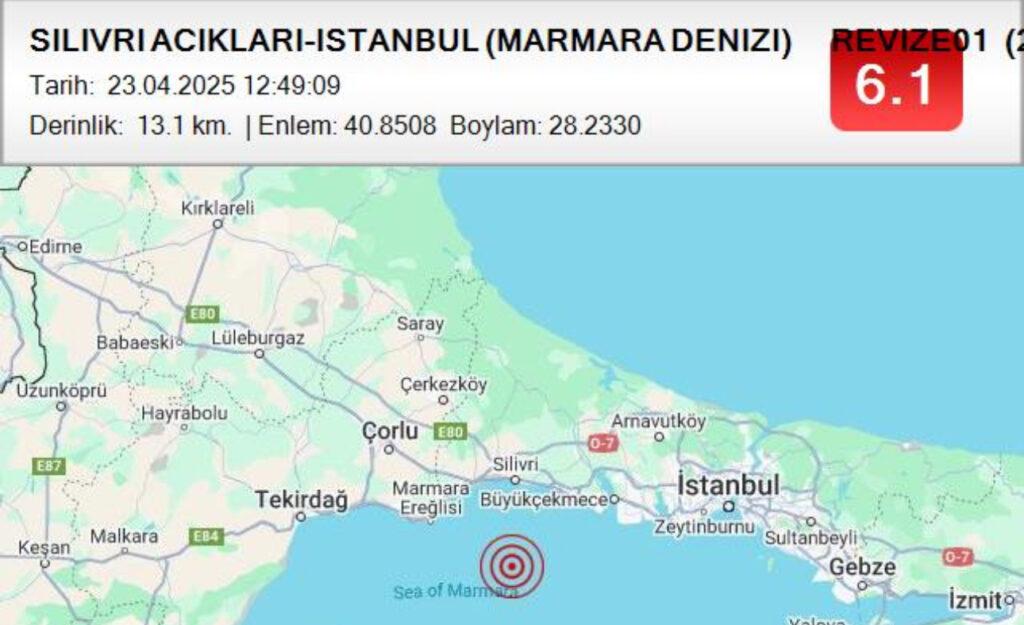 6.1’lik büyük deprem, deniz tabanının 13.1 kilometre altında meydana geldi. Bu depremin fay hattında gerçek bir kırığa sebep olup olmadığı, arkasından gelen depremlerin onun artçısı olup olmadığı şu an için bilinmiyor, bilinen İstanbul’un etrafının ardı ardına sallanmakta olduğu.