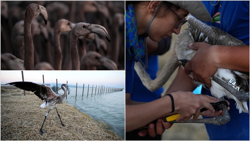 İzmir Kuş Cenneti'nde yapay üreme adasında bu yıl dünyaya gelen binlerce yavru flamingodan yaklaşık 650'si göç yolları, yaşam alanları verisi toplamak amacıyla uzmanlar ve gönüllüler tarafından halkalandı.