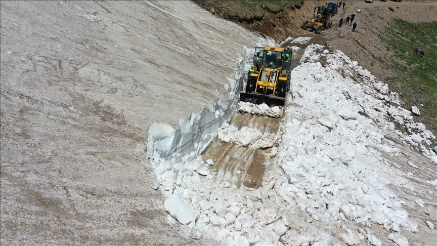 Hayvanlarını meralara çıkaran besicilerin mağduriyet yaşamaması için haziranda da yayla yollarını açma çalışması yürüten ekipler yer yer 5 metreyi bulan karla mücadele ediyor.