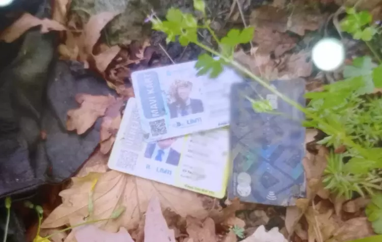 Dere çevresinde kafatası ve kemiklerinin yanında bulunan İstanbul ücretsiz taşıma kartı, İstanbul Mavi Kart ve kredi kartı ise Demirören Haber Ajansı (DHA) muhabiri tarafından görüntülendi.