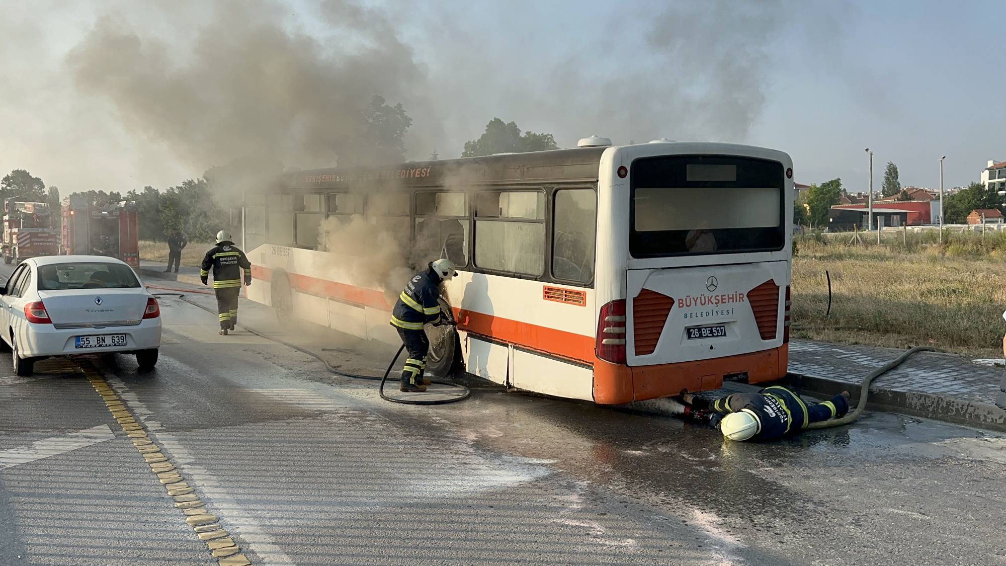 Eskişehir’de seyir halindeyken körüğü patlayan belediye otobüsü alev aldı. İtfaiyecilerin söndürdüğü yangında, otobüsteki kadın yolcu, dumandan etkilenip hastaneye kaldırıldı.