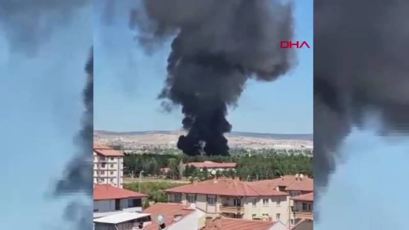 Yangından dolayı şehrin üstünü yoğun duman kapladı.