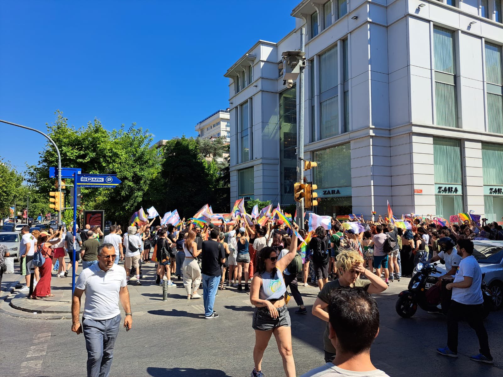 İstanbul Valiliği Onur Yürüyüşü nedeniyle her yıl olduğu gibi Taksim Meydanı'nı yine kapattı. Ancak LGBTİ+'ler ters köşe yaparak Bağdat Caddesi'ne gitti. En az 15 gözaltı olduğu söyleniyor.