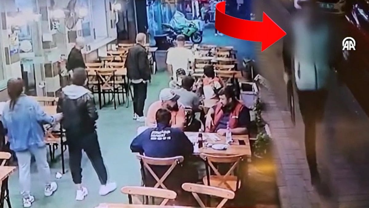 Olay anında yakındaki bir lokantada yemek yiyenlerin yaşadığı korku ve panik, iş yerinin güvenlik kamerasınca kaydedildi.