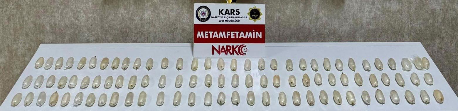 Kars'ta bir yolcu otobüsünde yapılan kontrol uygulamasında şüpheli hareketleri nedeniyle gözaltına alınan bir İran vatandaşının makatından 94 parça uyuşturucu çıktı. Doğal yollarla çıkarılan uyuşturucuya el kondu, şüpheli tutuklandı.