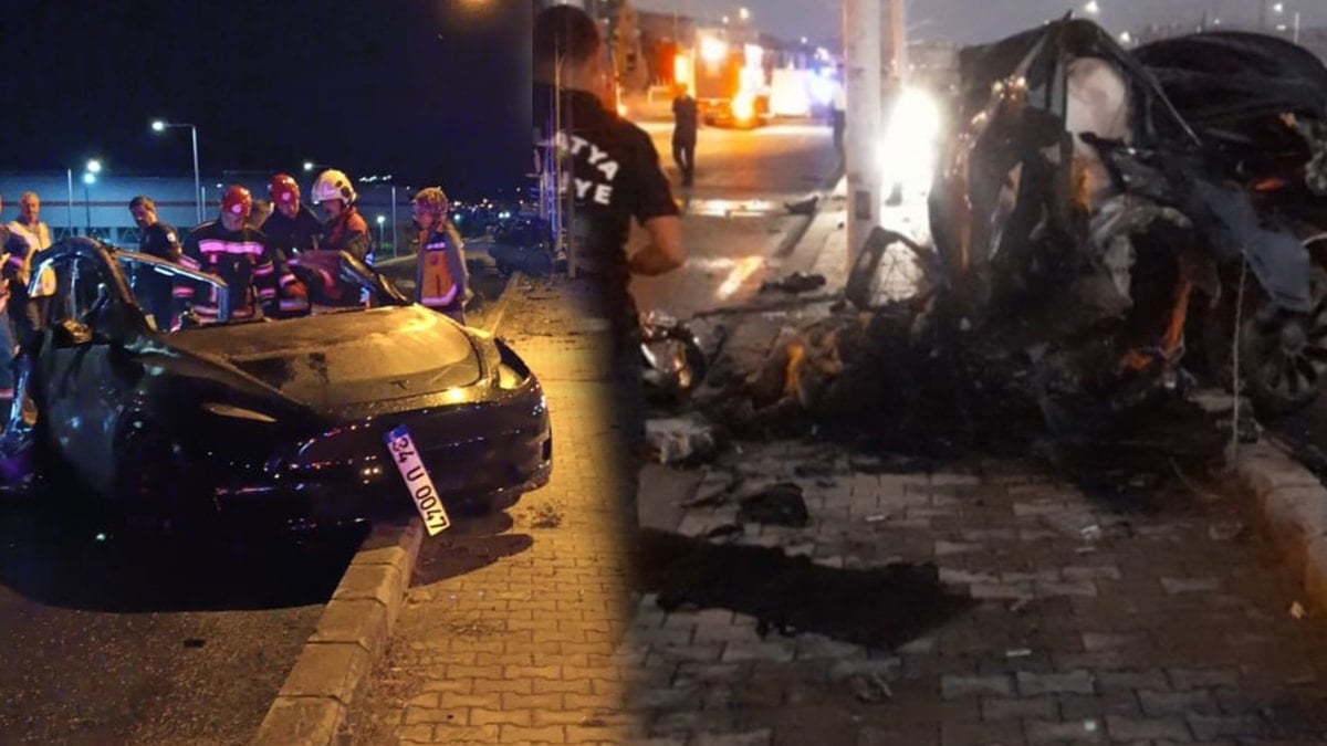 Polis ekipleri kaza bölgesinde inceleme yaparken, olayla ilgili soruşturma sürüyor. Tesla marka elektrikli otomobilin çarpma sonrası alev alma sebebi teknik yönden ayrıca incelenecek.