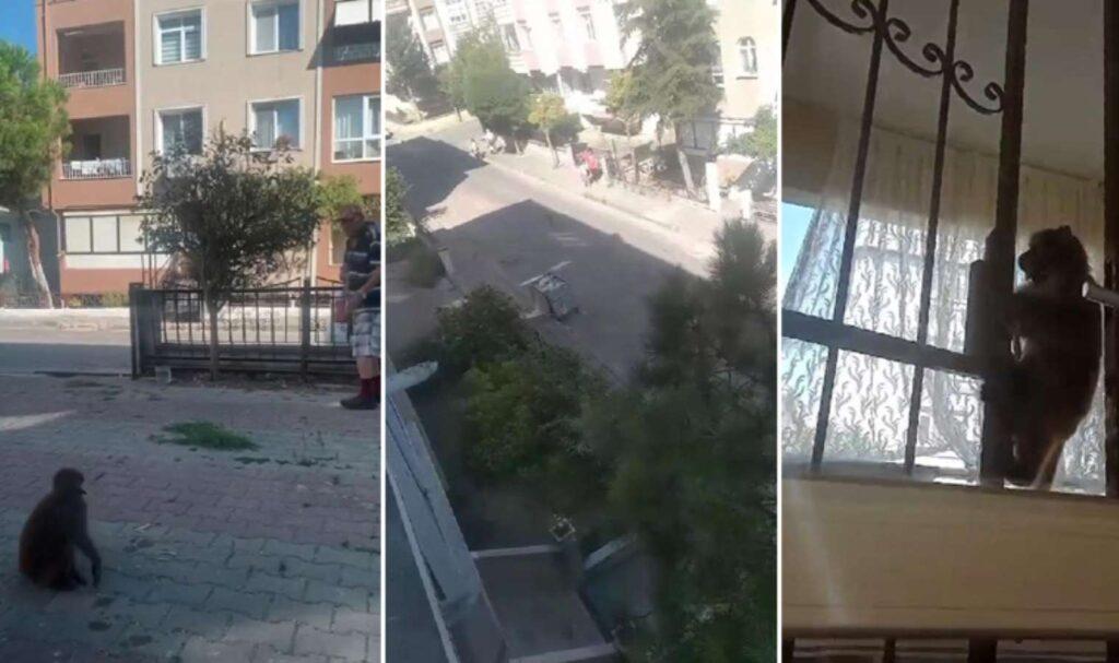 Sokakta panik yaratan maymunun, sığındığı evin bulunduğu apartman bir anda boşaldı. O anlar böyle görüntülendi.