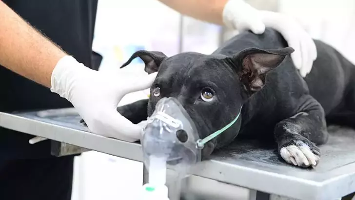 Çip kontrolünde adının Tokyo olduğu belirlenen iki yaşındaki Pitbull melezi köpeğin dumandan yoğun etkilenmesi nedeniyle atakları ve kasılmaları vardı. Veteriner hekimler hemen yoğun oksijen terapisine başladı. Hayati riski söz konusuydu: