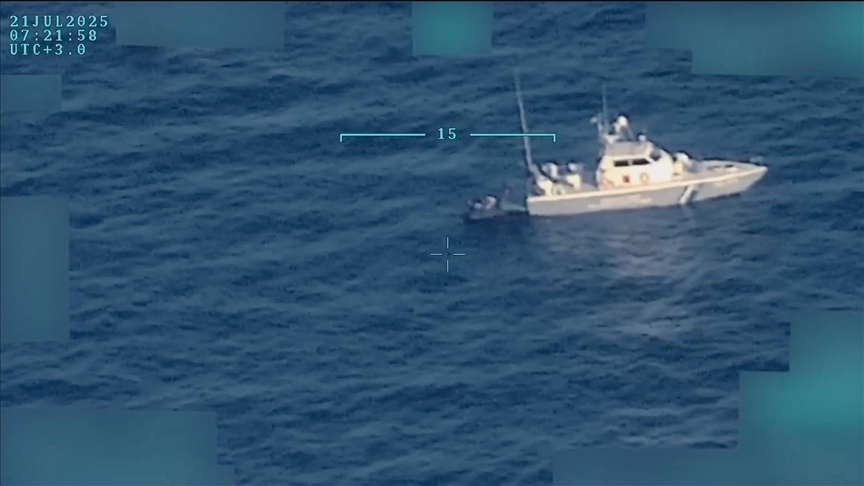Milli Savunma Bakanlığı (MSB) Deniz Kuvvetleri Komutanlığı insansız hava aracıyla keşif ve gözetleme uçuşunda kaydedilen, Yunanistan’a ait sahil güvenlik botunun göçmenleri Yılancı Burnu’na ittiği görüntüleri paylaştı.