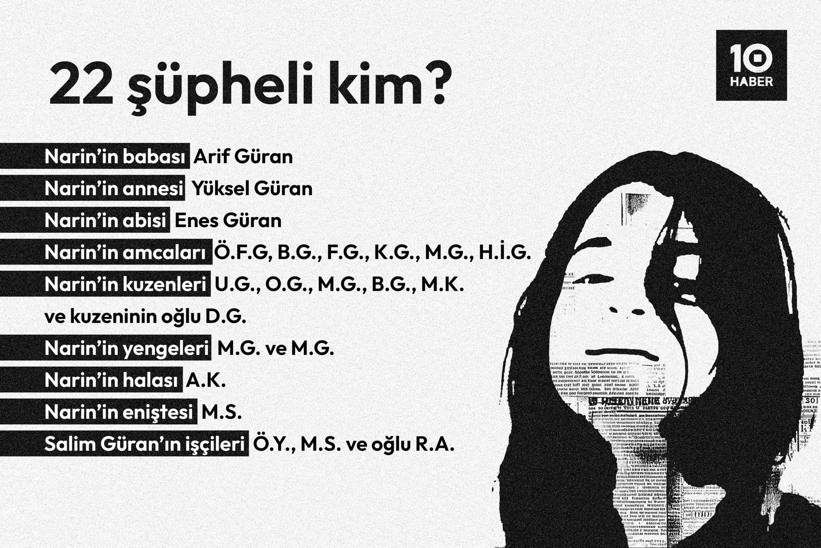 Diyarbakır'da dere yatağında ölü bulunan sekiz yaşındaki Narin Güran'la ilgili soruşturmada sona geliniyor. İtirafçı son ifadesinde amcaya dair yasak aşk söylentilerini ileri taşıdı. Aileyse basın açıklaması yaparak 'dış güçleri' suçladı.
