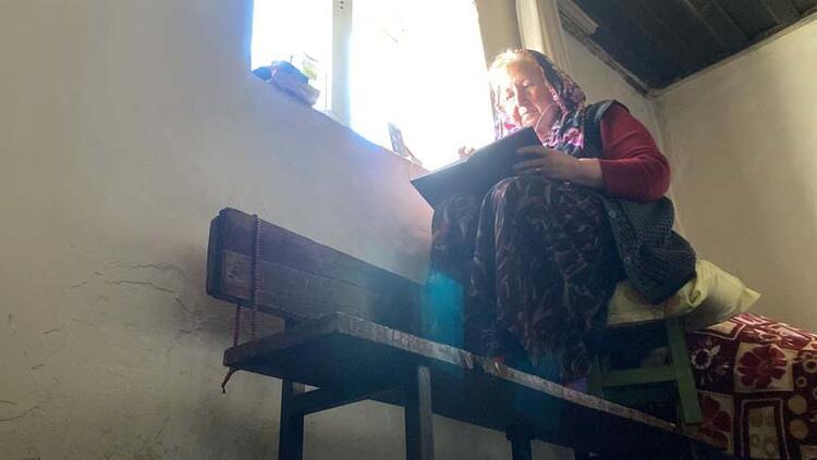 Bir taraftan ev işlerini yapan İşçi, bir taraftan da derslerini takip ediyor. Karslıların ‘Ayşen teyze’ dediği Ayşen Arda İşçi, internetin iyi çektiği bir odaya koyduğu minderine oturarak, online derslerini dikkatle takip ediyor. Pencere önüne tahtadan bir sıra, sıranın üzerine de minder koyan İşçi, kulaklıkla ders dinleyip, defterine not alıyor.