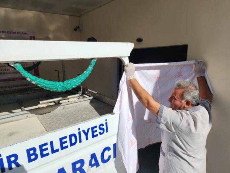 Tabut çıkacağı sırada basının görüntü almasını engellemek için çarşaf gerildi.
