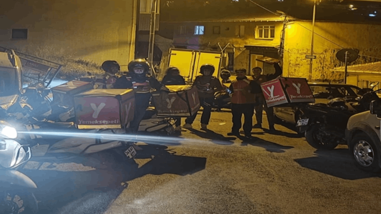 Eyüpsultan’da bir kişi farklı restoran ve uygulamalardan kapıda ödemeli çok sayıda yemek siparişi verdi. Kapıyı açan olmadı. Motokuryeler siparişleri teslim etmek ve ödeme almak için kapıda bekledi.