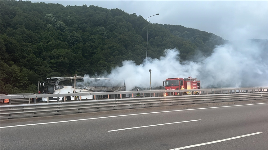 Durumu fark eden sürücü, otobüsü emniyet şeridine çekerek 38 yolcuyu tahliye etti.