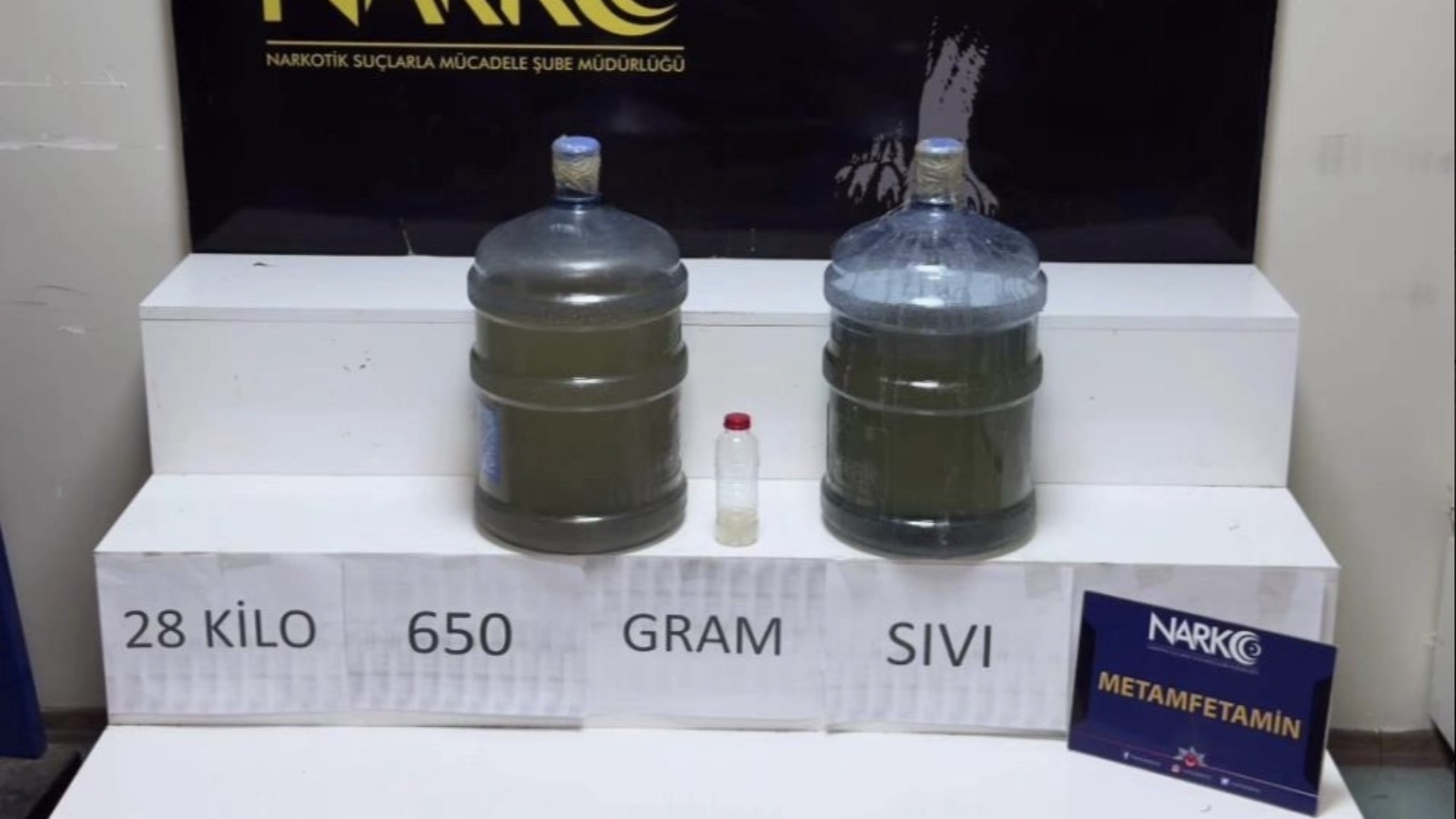 İki damacananın içinde 28 kilo 650 gram sıvı metamfetamin ele geçirildi. Gözaltına alınan K.C. ile H.Z., sorgularında “Adana’ya gezmek için gidiyorduk. Bagajdaki uyuşturucudan haberimiz yok” dedi.