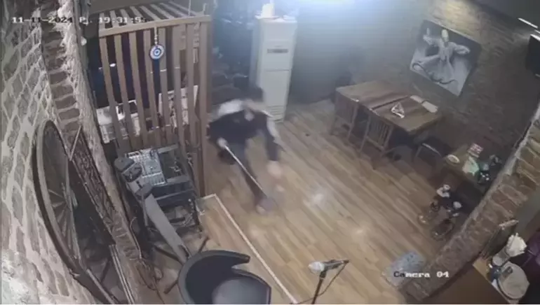 Panik dolu anlar yaşanırken iş yerinde çalışanlardan biri saldırgana çekpasla müdahale etmeye çalıştı. Restorandaki müşteriler korku içinde dışarı kaçtı. Yaşanan dehşet güvenlik kamerasına yansıdı.