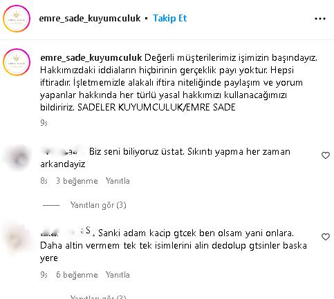 Oluşan izdiham nedeniyle emniyet güçleri çevrede güvenlik önlemi aldı. Kuyumcu Emre Sade çıkan dedikodular sonrası yaşanan izdiham nedeniyle açıklama yayınlandı. Emre Sade “Olumsuz bir durum yok. Gördüğünüz gibi işyerimiz açık. Her gün olduğu gibi bugün de iş yerimizi açtık, ama kötü niyetli kişilerin esnaflığımıza zarar vermek için çıkardığı dedikodu sonrası böyle bir durumla karşılaştık. İş yerimizde hizmet vermeye devam ediyoruz. İşletmemizle ilgili iftira niteliğindeki paylaşım ve yorumlar hakkında her türlü yasal hakkımızı kullanacağımızı bildiririz” dedi.