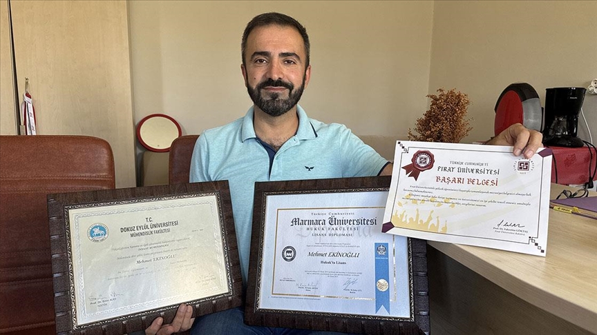 Elazığ'da yaşayan 45 yaşındaki Mehmet Ekinoğlu önce mühendis, sonra avukat oldu, bu yıl da tıp fakültesini bitirdi.
