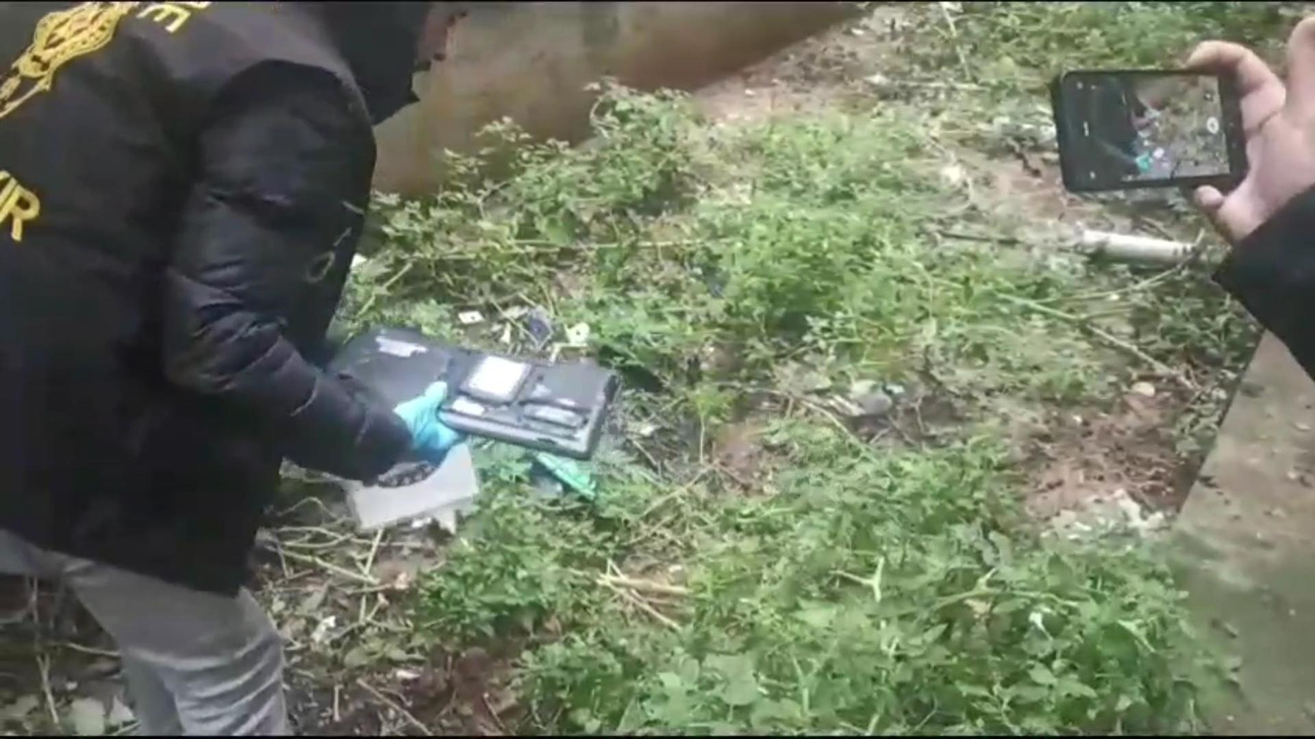 Şüphelinin dışarı attığı bilgisayar kırıldı.