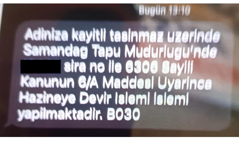 Defne ve Antakya düzenlemenin ilk uygulama alanı olarak duyurulurken Samandağ’da yaşayanlara bir aydır mesaj gönderildiği ortaya çıktı. En son 20-25 gün önce gönderildiği belirtilen mesajda “Adınıza kayıtlı taşınmaz üzerinde Samandağ Tapu Müdürlüğü’nde … sıra no ile 6306 sayılı kanunun 6/A maddesi uyarınca Hazine’ye devir işlemi yapılmaktadır” deniyordu. Bunu gören vatandaşlar soluğu tapu müdürlüğünde aldı, ama verilen cevap kararın bakanlıktan gönderildiğiydi.