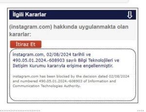 BTK’nin web sitesindeki bilgi sorgulama menüsünden Instagram’a erişimin engellendiği bilgiler alınırken, bu engellemenin nedeni ve ne kadar süreceği konusunda henüz bir açıklama yapılmadı.
