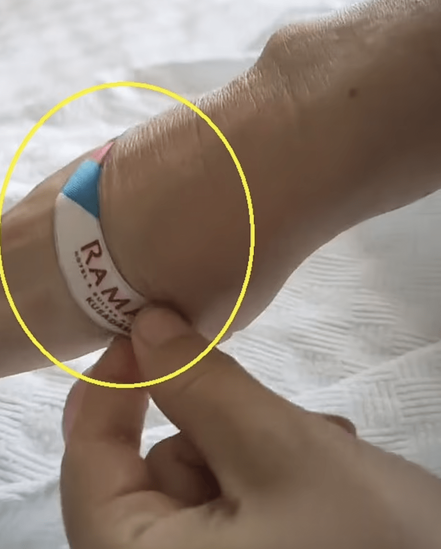 Mayıs ayında Kuşadası’nda lüks bir otelde iki çocuğuyla yaptığı tatilde otele girişte verilen ve otelin imkânlarından yararlanmasını sağlayacak bilekliği, tatilini bitirince atmamış.