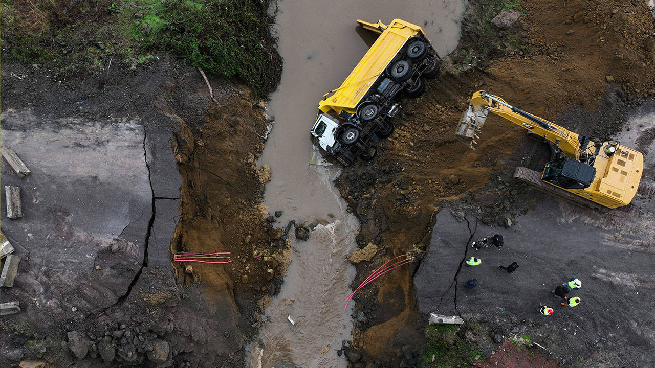 Sarıyer'de yağış nedeniyle çöken yol üzerinde bulunan bir kamyonet ve pikap dereye düştü. İhbar üzerine bölgeye itfaiye ve sağlık ekipleri sevk edilirken çalışmaların sürdüğü belirtildi.